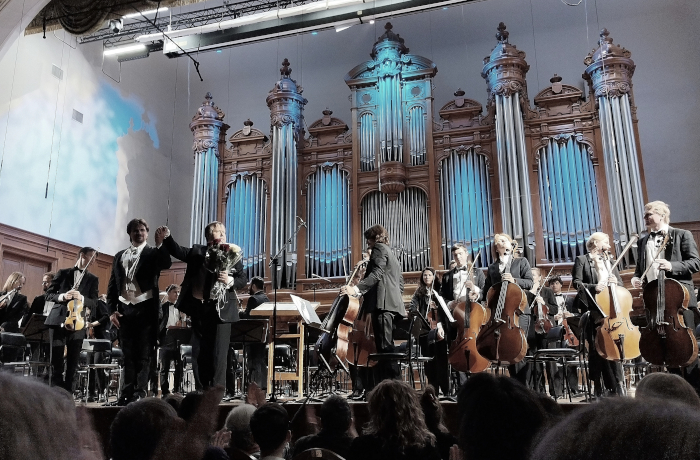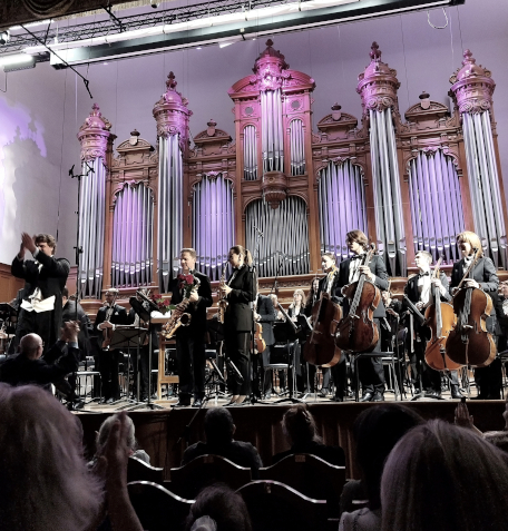 «Праздничная увертюра» Д.Шостаковича, уже ставшая традицией, грандиозный Концерт Б.Чайковского (к 100-летию со дня рождения композитора), масштабный органный опус В.Кикты составили первое отделение. Бравурное Concerto grosso А.Эшпая (к 100-летию со дня рождения композитора), невероятно глубокая «Молитва для альта соло» Е.Кожевниковой и оптимистический Концерт для 4-х саксофонов Е.Подгайца, написанный во время ковидного локдауна, прозвучали во втором.