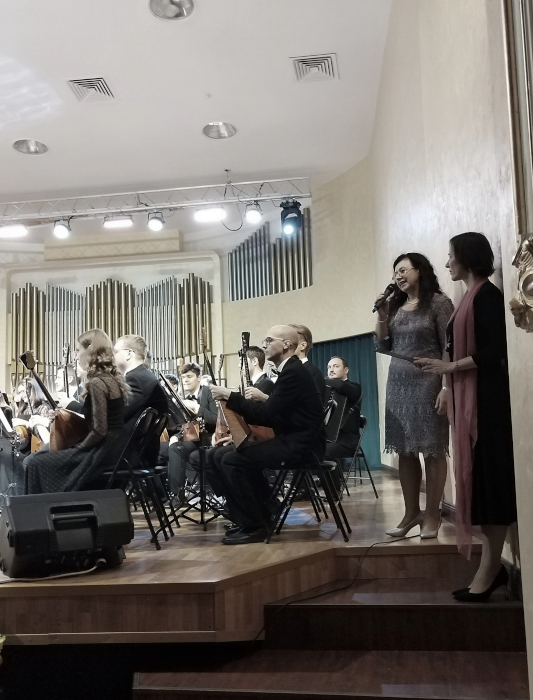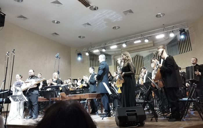 12 октября на «Московской осени – 2025» в Доме композиторов случился переаншлаг благодаря очередному фестивальному концерту. Концерт был необыкновенно красивым, с участием Академического оркестра русских народных инструментов имени Н.Н. Некрасова РГМЦ «Орфей» (худ. руководитель и главный дирижер — Евгений Волчков, дирижер — Андрей Степаненко) и с яркой разнообразной программой — вокальной и инструментальной, с народными солирующими инструментами и совсем неожиданными для «народного» исполнения.