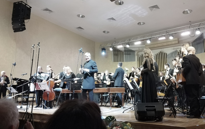Завершил парад замечательных премьер Игорь Красильников совершенно роскошной «Серенадой для гуслей и оркестра» (Елизавета Велесова, гусли клавишные, Алексей Абраменко, гусли щипковые, и Павел Лукоянов, гусли звончатые). В финале дирижер Евгений Волчков пригласил на сцену всех композиторов, чьи произведения прозвучали в программе. В моей фестивальной практике это было впервые, и это было особенно торжественно и запоминающе. Не могу не отметить виртуозную игру всех солистов, но особенно домру Евгения Волчкова, гусли клавишные Елизаветы Велесовой, гусли звончатые Павла Лукоянова и обаятельнейший народный голос Анастасии Ляскановой.
