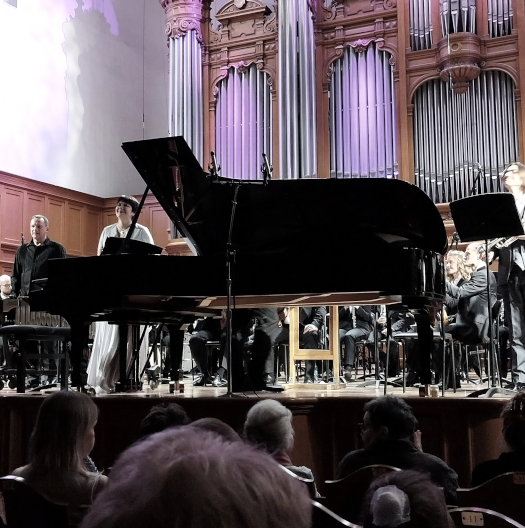 Замечательные солисты, исполнители сложнейших партий, — Евгений Стародубцев (ф-но), Елена Кузнецова (ф-но), Мария Сурначёва (гобой), Мария Андреева (скрипка), Виктор Сыч (маримба) — оказались достойны самых искренних восхищений.