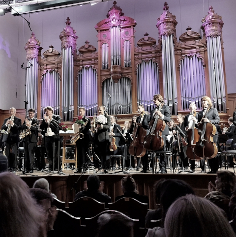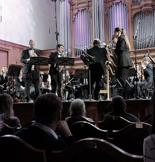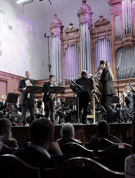 «Праздничная увертюра» Д.Шостаковича, уже ставшая традицией, грандиозный Концерт Б.Чайковского (к 100-летию со дня рождения композитора), масштабный органный опус В.Кикты составили первое отделение. Бравурное Concerto grosso А.Эшпая (к 100-летию со дня рождения композитора), невероятно глубокая «Молитва для альта соло» Е.Кожевниковой и оптимистический Концерт для 4-х саксофонов Е.Подгайца, написанный во время ковидного локдауна, прозвучали во втором.