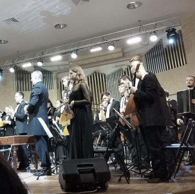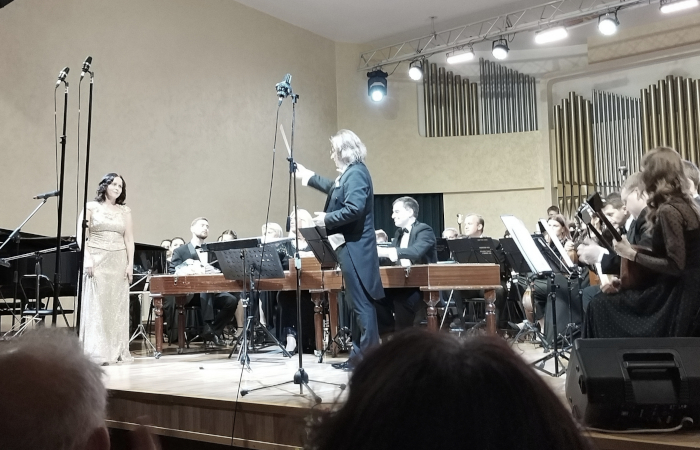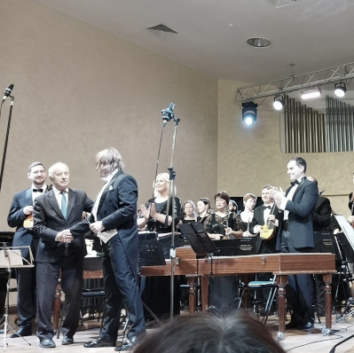 Завершил парад замечательных премьер Игорь Красильников совершенно роскошной «Серенадой для гуслей и оркестра» (Елизавета Велесова, гусли клавишные, Алексей Абраменко, гусли щипковые, и Павел Лукоянов, гусли звончатые). В финале дирижер Евгений Волчков пригласил на сцену всех композиторов, чьи произведения прозвучали в программе. В моей фестивальной практике это было впервые, и это было особенно торжественно и запоминающе. Не могу не отметить виртуозную игру всех солистов, но особенно домру Евгения Волчкова, гусли клавишные Елизаветы Велесовой, гусли звончатые Павла Лукоянова и обаятельнейший народный голос Анастасии Ляскановой.