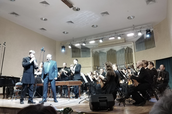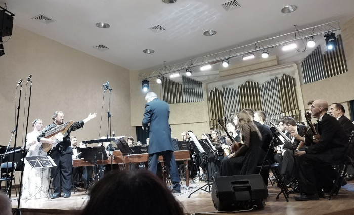 12 октября на «Московской осени – 2025» в Доме композиторов случился переаншлаг благодаря очередному фестивальному концерту. Концерт был необыкновенно красивым, с участием Академического оркестра русских народных инструментов имени Н.Н. Некрасова РГМЦ «Орфей» (худ. руководитель и главный дирижер — Евгений Волчков, дирижер — Андрей Степаненко) и с яркой разнообразной программой — вокальной и инструментальной, с народными солирующими инструментами и совсем неожиданными для «народного» исполнения.